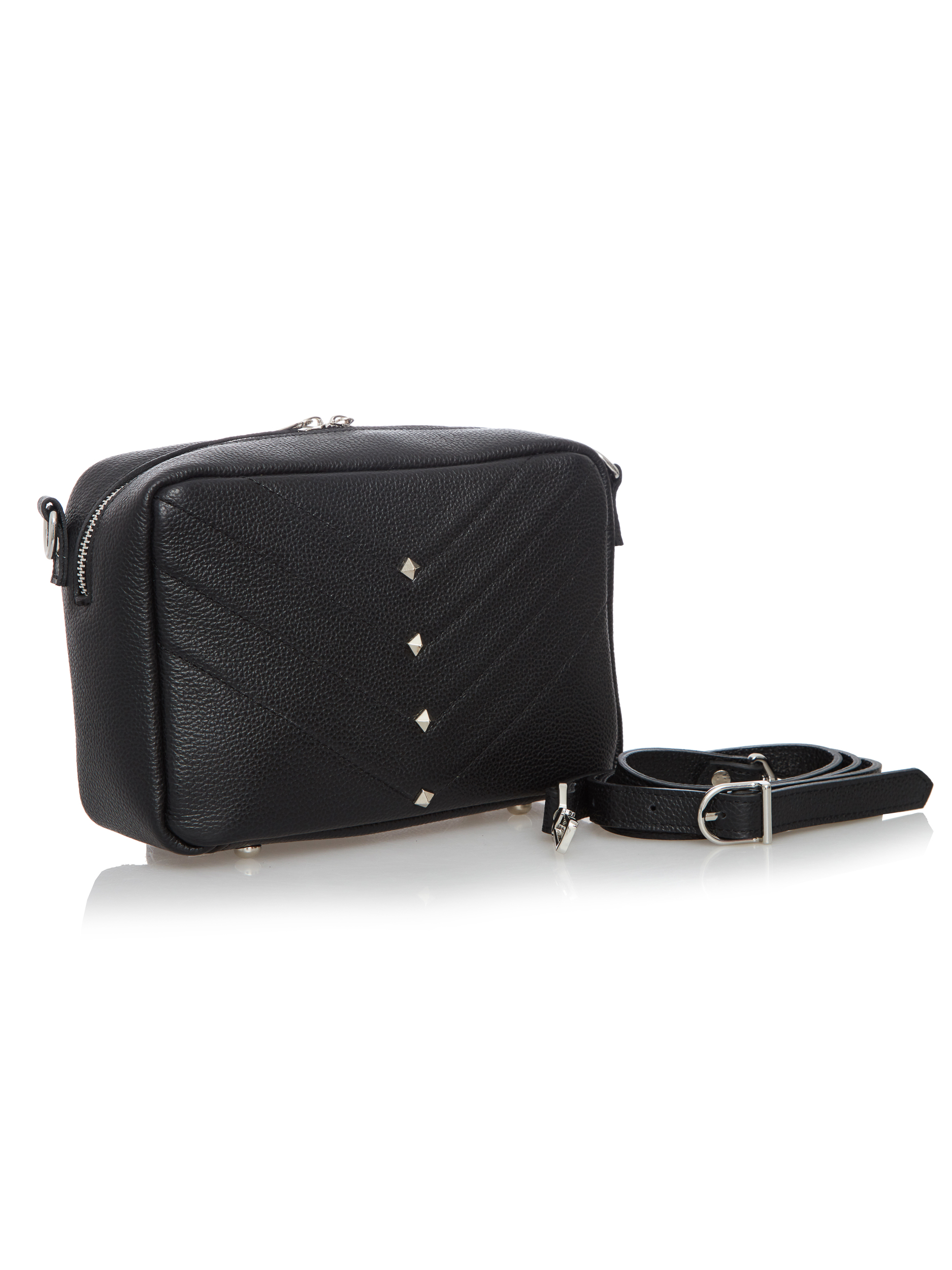 Geanta din piele naturala crossbody de marime medie cu matlaseu si tinte.